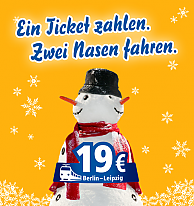 InterConnex-Werbung für das Sonderangebot "Ein Ticket zahlen. Zwei Nasen fahren".