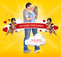 InterConnex-Werbung für das Sonderangebot "Wo die Liebe hinfährt - Ein Ticket. Zwei fahren."