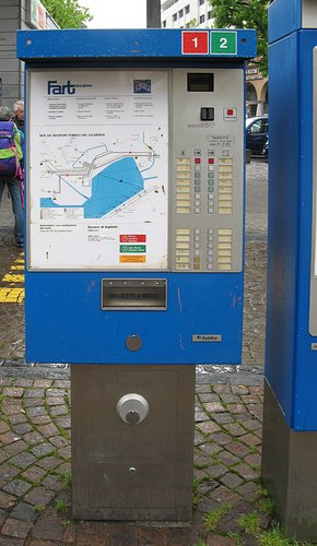Bedienung: Taste für jede erhältliche Relation und Tarifstufe, Bedienerführung rudimentär mit teils dreisprachiger Anleitung.