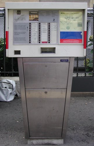 Galerie Billettautomaten Schweiz 98/103 Transports regional Neuchâtelois (TRN)Hersteller: Sadamel.Sortiment: Einzelbillette.Zahlungsmöglichkeiten: CH-Münzen.Bedienung: Tasten für Zielstation und Tarifstufe. Anleitung dreisprachig.(Place Pury, 31.08.2003)
