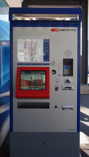 Zahlungsmöglichkeiten: CH- und EUR-Bargeld (Noten bis CHF 200/EUR 200), Kreditkarten, Postcard, Reka-Checques, Reka-Rail. Automat gibt Retourgeld (bis CHF 99.90) auch in CH-Noten aus.