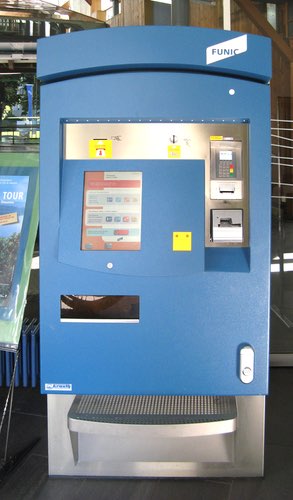 Sortiment: Einzelfahrkarten, Tageskarten, Gruppenbillette, Aufladen der Wertkarte (für ganze Region Biel), Velobillette (für Standseilbahn).