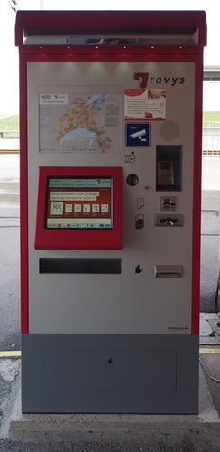 Zahlungsmöglichkeiten: CH- und EUR-Bargeld (Noten bis CHF 200/EUR 200), Kreditkarten, Postcard, Reka-Checques, Reka-Rail. Automat gibt Retourgeld (bis CHF 99.90) auch in CH-Noten aus.
