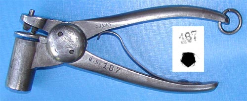 Galerie Billettzangen Gotthardbahn 2/9 Nr. 187 der Gotthard-Bahn, aus der Anfangszeit; Hersteller: H. Jsler, Winterthur; mit integriertem Vierkantschlüssel.
