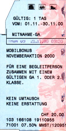 Galerie Herbstaktion Schweiz 16/21 2000: Die Novemberaktion unter dem Titel „Mobilbonus Novemberaktion“ war zweigeteilt. GA-Inhaber(innen) konnten ein Mitnahme-GA erwerben…