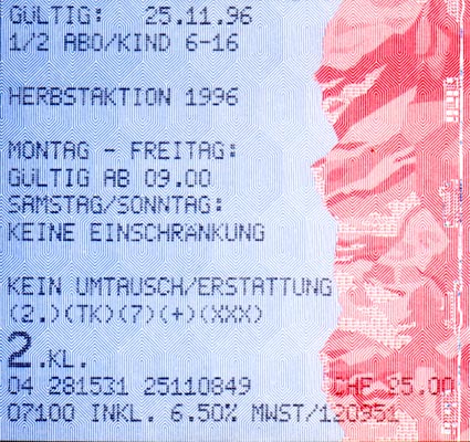 Galerie Herbstaktion Schweiz 13/21 1996: Auch auf Endlos-Papier wurden Herbstaktions-Billette gedruckt.