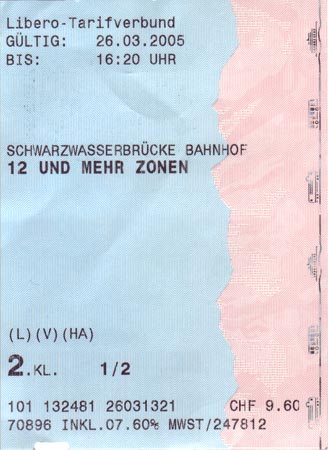 Galerie Tarifverbund Libero (Region Bern / Solothurn) 6/11 Einzelbillett für eine einfache Fahrt über 12 und mehr Zonen (das heisst im ganzen Verbundgebiet), ausgegeben über Prisma 2 am Schalter.