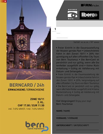 Galerie Tarifverbund Libero (Region Bern / Solothurn) 11/11 Gästekarte für die Stadtberner-Zonen 10 und 11.