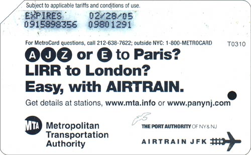 Galerie MetroCards New York 18/26 Der AirTrain wird als Verbindung der lokalen Subway-Linien mit den bekannten Städten der Welt angepriesen.