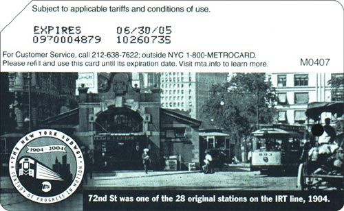 Galerie MetroCards New York 22/26 Jubiläumskarte 100 Jahre Subway. Bild der Station "72nd St" im Eröffnungsjahr 1904.