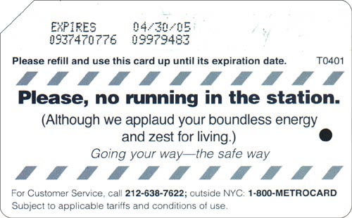 Sicherheitshinweis auf der Rückseite einer MetroCard Gold.