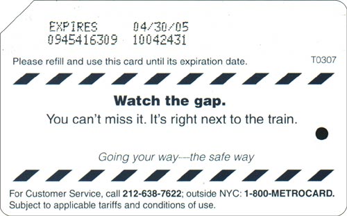 Sicherheitshinweis auf der Rückseite einer MetroCard Gold.