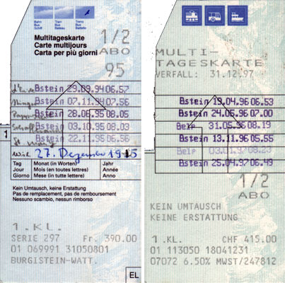 Multi-Tageskarten im Entwerterformat von 1994 und 1996…