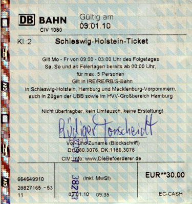 Galerie Ländertickets Deutschland 18/19 Schleswig-Holstein-Ticket für bis zu 5 Personen, mit Auflistung der am Schleswig-Holstein-Ticket beteiligten Unternehmen und den nutzbaren Zuggattungen sowie mit Zeile zur Personifizierung.