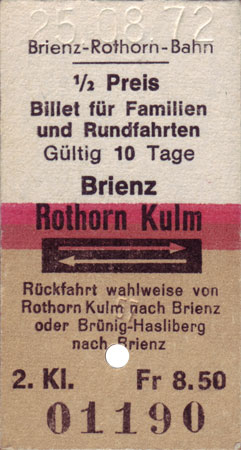 Der Aufdruck "Billet für Familien und Rundfahrten" tönt speziell. Familien sind eine Kategorie von Reisenden und Rundreisen sind eine Art Reise. Die Rundreise ist zudem nicht aus dem Aufdruck ersichtlich - der Aufdruck "Rückfahrt wahlweise von Rothorn Kulm nach Brienz oder Brünig-Hasliberg nach Brienz" steht auf (fast) allen Rückfahrbilletten.