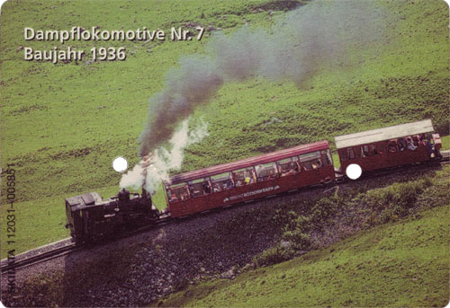 Galerie Brienz–Rothorn-Bahn 46/50 Auf der Rückseite der mittels Skidata-System ausgegebenen Fahrkarten finden sich Bilder der Bahn oder…