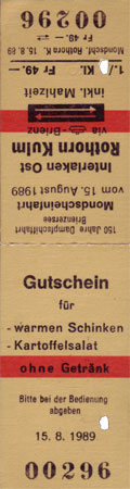 Galerie Brienz–Rothorn-Bahn 35/50 Die Spezialbillette (horizontaler roter Balken) für die Mondscheinfahrten waren eine Art Doppelkarte, wobei ein Teil Fahrkarte und ein Teil Bon für ein Essen war.