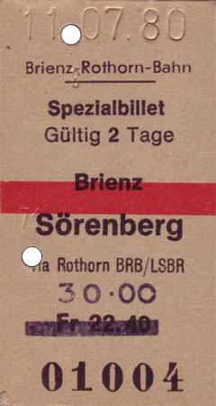 Die Dampfbahn ab Brienz führt von Süden auf das Brienzer Rothorn. Auf der Nordseite gibt es jedoch auch noch die Luftseilbahn Sörenberg-Brienzer Rothorn (LSBR). Entsprechend gibt es auch Spezialbillette für die Bergfahrt mit der Dampfbahn und die Talfahrt mit der Luftseilbahn.