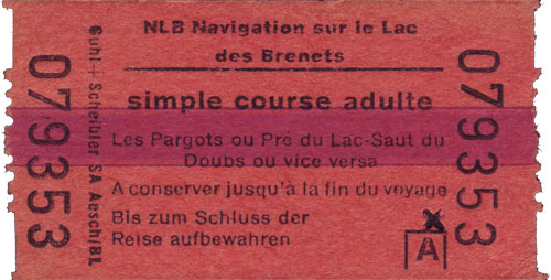 Galerie Schifffahrt Schweiz 9/42 Lac des Brenets: Rollenbillett der NLB für einfache Fahrt. Die Rollenbillette haben keinen Preis aufgedruckt.