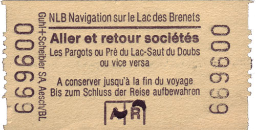 Galerie Schifffahrt Schweiz 11/42 Lac des Brenets: Rollenbillett der NLB für Hin- und Rückfahrt zum Gruppentarif.