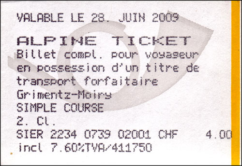 Alpine Ticket in französischer Sprache.
