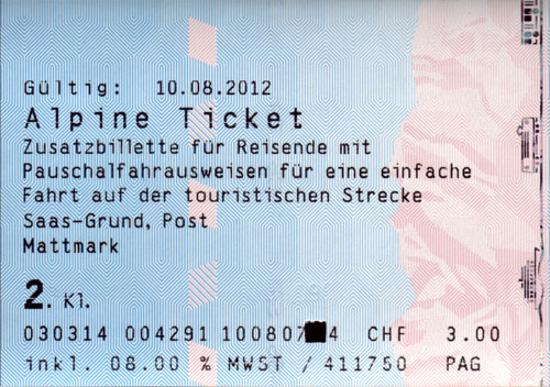 Galerie Alpine Ticket 21/22 Alpine Ticket für einfache Fahrt zwischen Saas Grund und dem Stausee bei Mattmark.