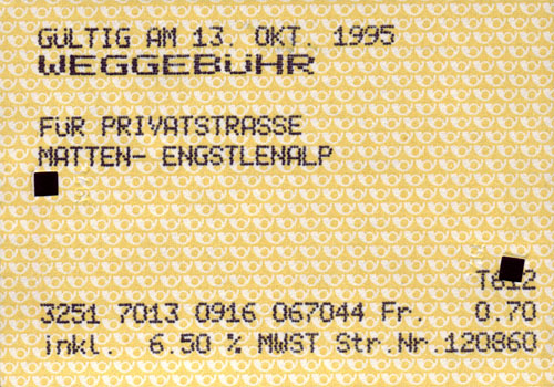 Galerie Alpine Ticket 7/22 Die Weggebühr wurde auch zum Tarif für einfache Fahrt und Einheimische (T612) verkauft.