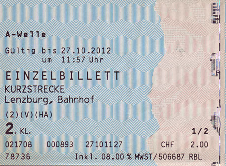 Galerie Tarifverbünde Schweiz 2/24 A-Welle: Einzelbillett für eine Kurzstrecke zum halben Preis. Verkauft durch Regionalbus Lenzburg (RBL beim MWST-Vermerk).