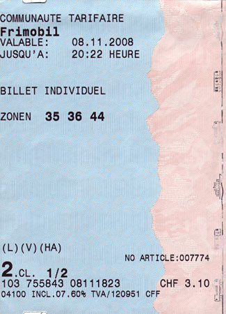 Galerie Tarifverbünde Schweiz 6/24 Frimobil: Einzelbillett für drei Zonen (35, 36, 44; entlang der SBB-Strecke von Rosé bis Romont) zum halben Preis. Verkauft durch die SBB (CFF).